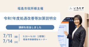 弊社(株式会社いちたす)では、これまで処遇改善等加算に関する説明会やセミナーを数多く開催し、複雑な制度をわかりやすくお伝えしてきた豊富な実績がございます。専門的なサポートを必要とされる自治体のご担当者様、また自園の対応についてご相談されたい施設様は、ぜひお気軽にお問い合わせくださいませ。