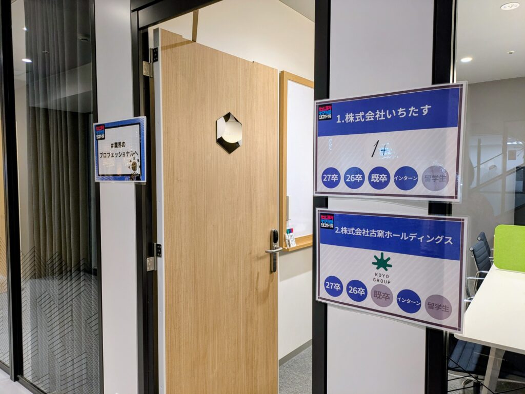 一般的な企業説明会は、ブースの配置が業種でくくられていることが多いと思います。希望の業種や興味・関心のある業種が決まっていれば、一度に同業種の企業を見ることができるので効率が良いです。