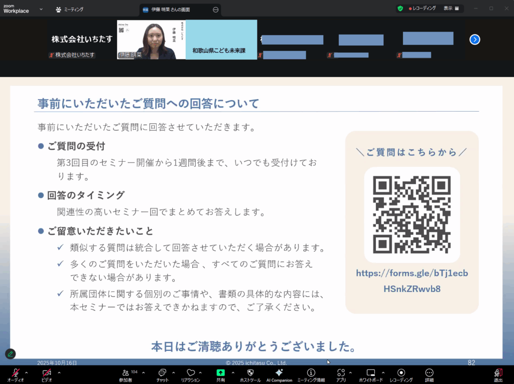 後半では、事前にいただいたご質問に回答をいたしました。実際の現場ご担当者様から寄せられたご質問で、より実態に則した疑問の解消ができます。