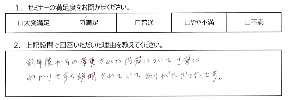 - 「前年度から変更になっている点を丁寧にわかりやすく説明されていてありがたかった」