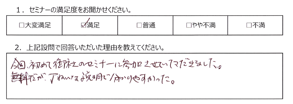 - 「今回初めて参加したが、無料とは思えないほど丁寧な説明で分かりやすかった」